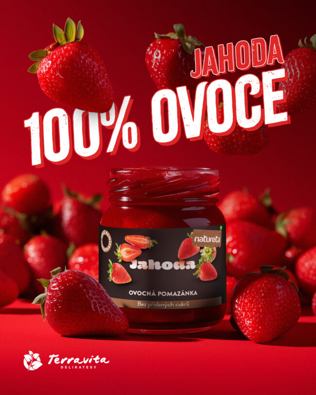 Pomazánka ze 100% jahod je oslavou sladkosti, kterou umí vykouzlit jen čerstvě sklizené červené plody. Žádný přidaný cukr, jen jahody a ovocná šťáva – přesně tak, jak to zamýšlela příroda. Při šetrném vaření v uzavřeném kotli si jahody uchovávají svou charakteristickou chuť a vůni, která je jemná, svěží a dokonale ovocná. Veškerá sladkost pochází výhradně z jahod sklizených na vrcholu zralosti. Každá lžička je jako připomínka letního dne. Ochutnejte ji na chleba, v jogurtu, jako základ pro dezerty nebo jen tak pro radost. 100 % jahodová pomazánka je tou pravou volbou pro každého, kdo hledá poctivou chuť bez kompromisů a přidaných cukrů.