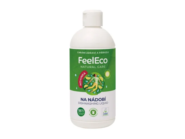 FeelEco prostředek na ruční mytí nádobí s oblíbenou jemnou vůní citronu a 98% podílem přírodního původu. Je dermatologicky testovaný a díky pH 5,5 a vyváženému složení nedráždí a nevysušuje pokožku. Obsahuje panthenol a glycerin, který pomáhá pečovat o kůži. Je vhodný i na mytí ovoce a zeleniny.